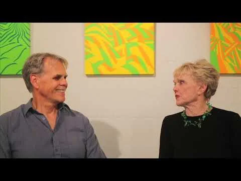 My favorite paintings are of Johns' aerial views inspired by actual images seen from the air above Costa Rica moments before landing. These images are rich in bright blues and greens combined and blended with abstract elements representing trees and rivers and various solid geometric shapes. The images depicted are reminiscent of final scenes in the Jerome Hellman film "The Mosquito Coast." Johns however does not work from photographs. Instead, he paints from sketches he has drawn on "air sickness" bags while on the plane. These bags are also included in the exhibit. Johns' love of life, art and the beauty inherent in nature are communicated in this recent interview.